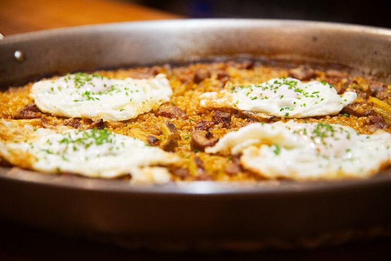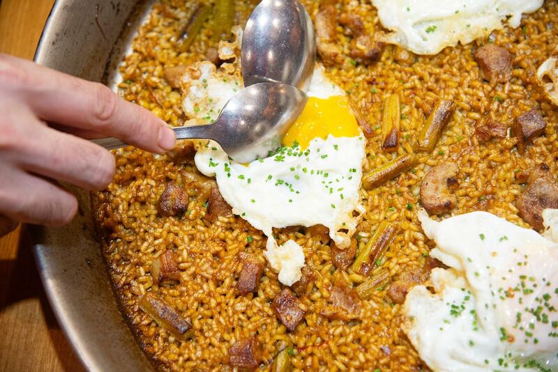 • Arroz de lomo, huevo y ajetes